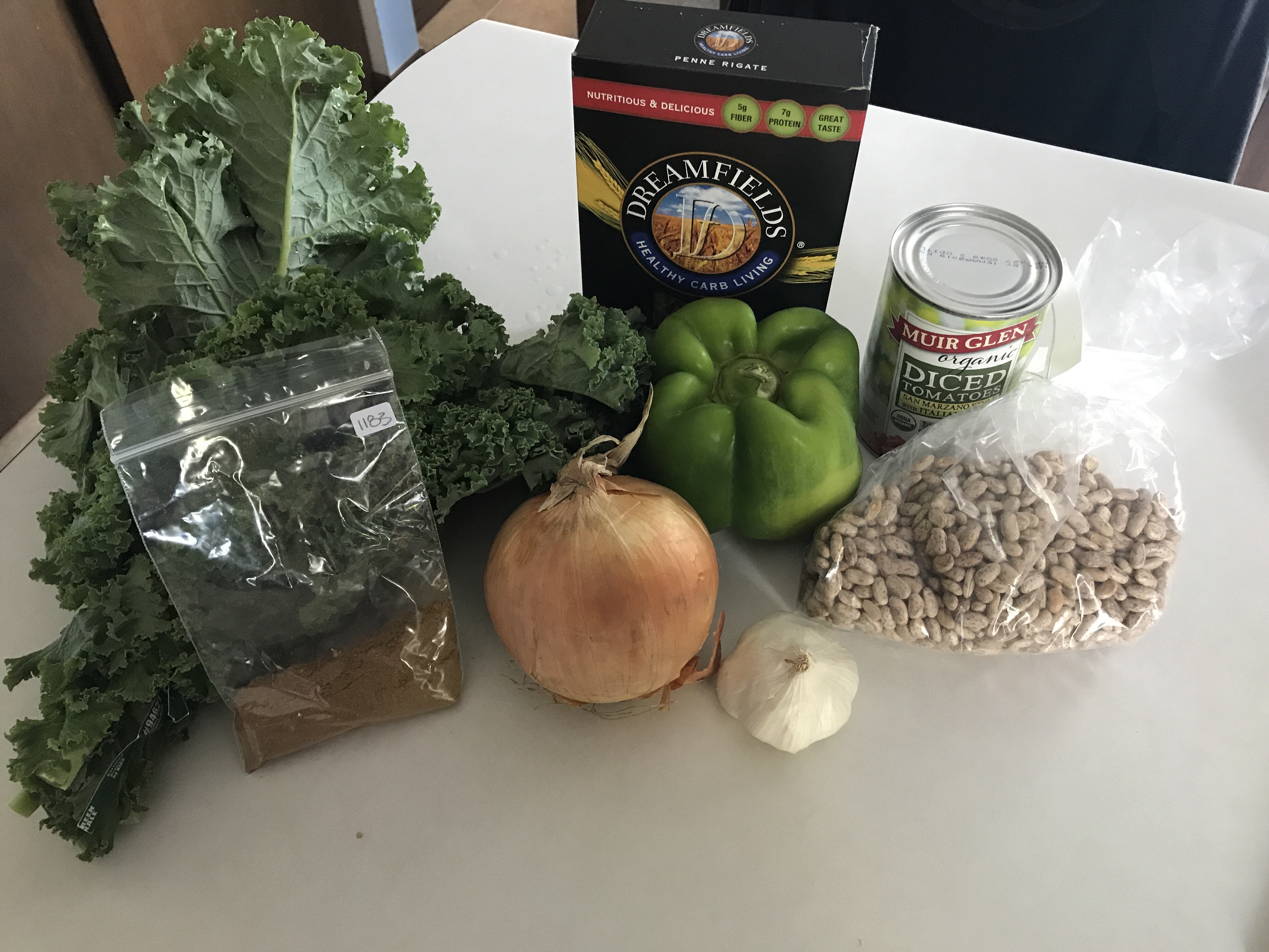Pictured above are all the ingredients I used except the pinto beans (2 hours to cook- not tonight).